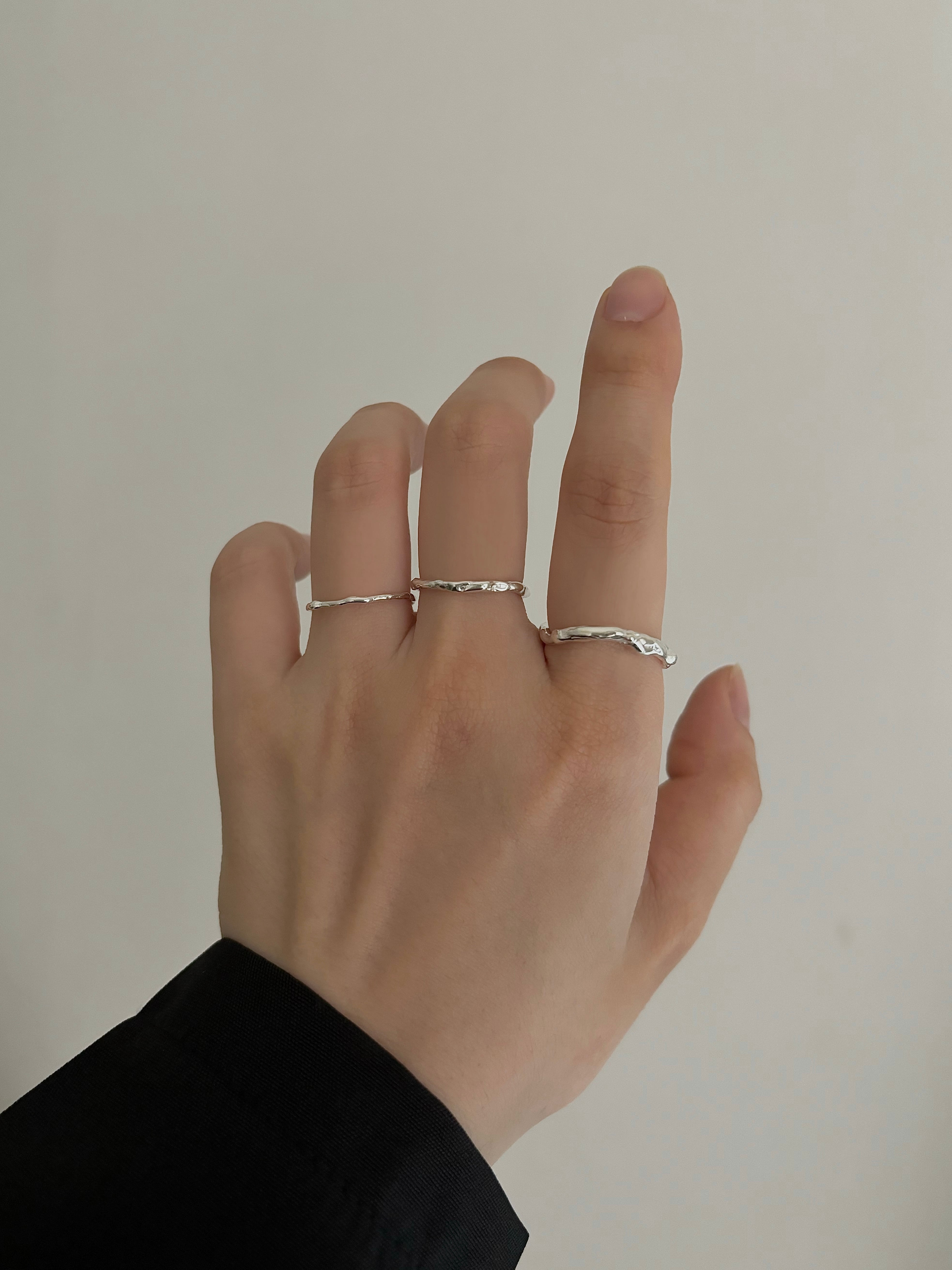 金属が溶けだしたようなテクスチャの一点ものリング。
